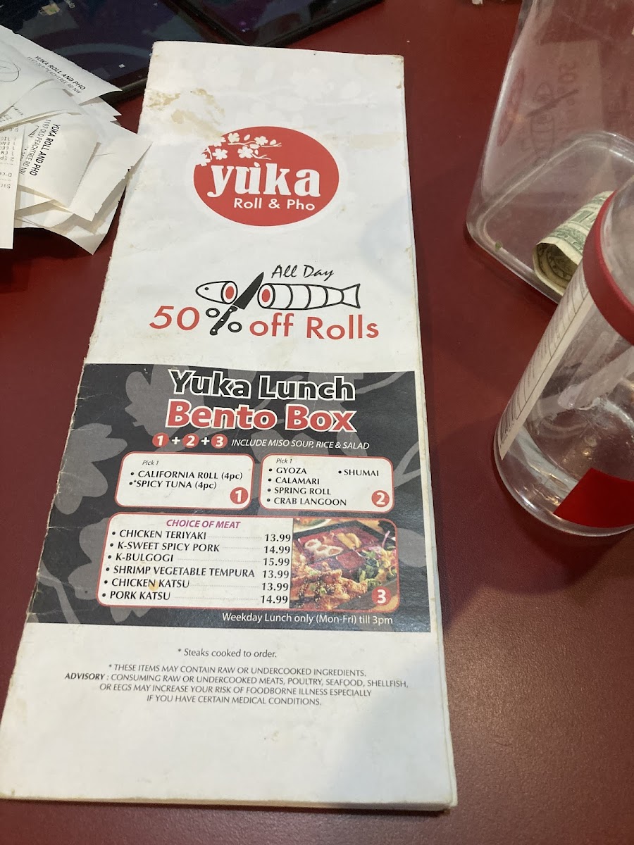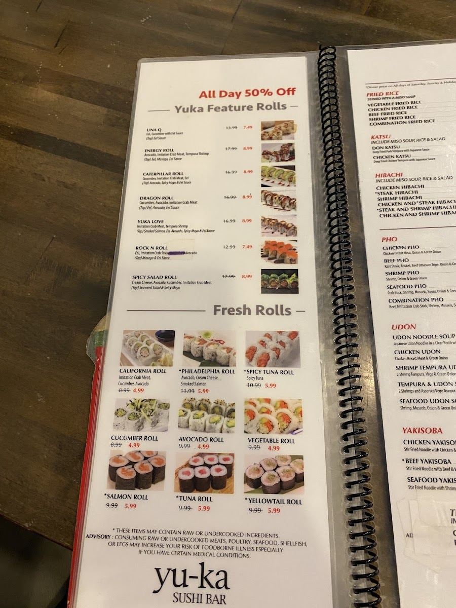 Besides sushi, they offer enticing fried rice options, including a savory Combination Fried Rice that marries egg, shrimp, and vegetables harmoniously. Customers rave about the friendly service and affordable prices, especially during promotions like 50% off rolls, which enhances its appeal. Overall, Sushi Yuka stands out for its quality dishes in a laid-back setting, making it an essential stop for sushi lovers and newcomers alike.